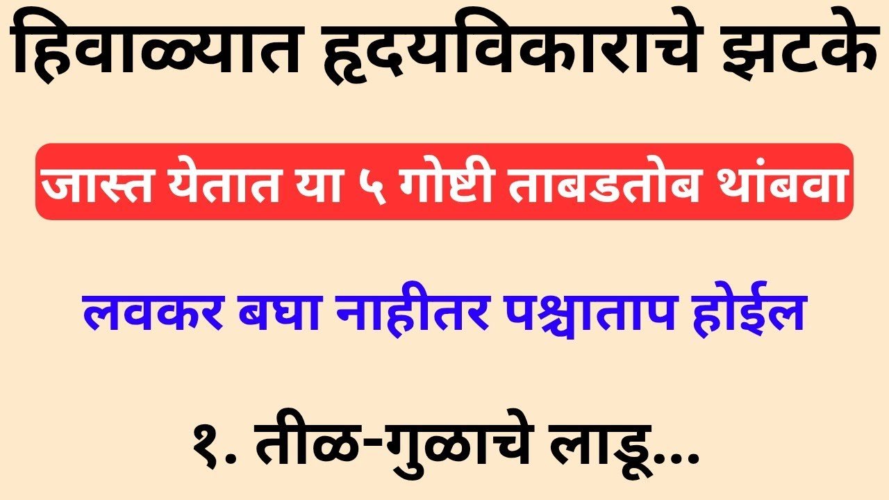 हिवाळ्यामध्ये अटॅकचा धोका शंभर टक्के का वाढतो हे आज आपण जाणून घेणार आहोत पाच प्रार्थना घातक भारतीय खाद्यपदार्थ तात्काळ टाळायचे आहेत हिवाळ्यामध्ये हृदयविकाराचा धोका शंभर टक्के का असतो हे देखील जाणून घेणार आहोत थंड हवा मन हा हृदयासाठी सर्वात धोकादायक काळ असतो त्याचबरोबर हिवाळा आपल्या सोबत अनेक आव्हाने घेऊन येत असतो हे हवामान आणि आनंददायी वाटू शकते परंतु 50 पेक्षा जास्त लोकांसाठी ते हृदयाचे शत्रू बनू शकते देशभरातील रुग्णालयामधील आकडेवारी वरून असे दिसून येते की नोव्हेंबर ते फेब्रुवारी दरम्यान हृदयविकाराच्या झटक्याची प्रकरणे जवळजवळ दुप्पट असतात तुम्ही हे देखील ऐकले असेल की तो माणूस सकाळी फिरायला गेला आणि तिथे खाली पडला हे सहसा हिवाळ्यातच घडत असते पण शेवटी काय हिवाळ्यात हृदयावर दाब वाढवण्याची सात सखोल कारणे जाणून घेणार आहोत.